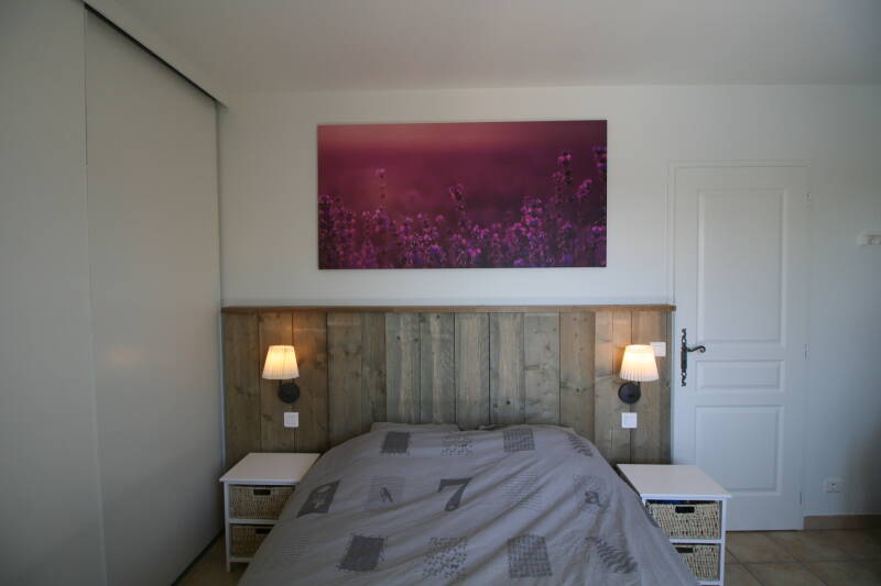Slaapkamer 'Olive' en 'Raisin' met dubbel bed 160x200cm en een ingebouwde kast.